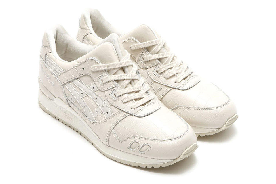 Asicsは Gel-Lyte 3” IIIff-white”を7月18日発売した。アッパーはエンボス加工したオフホワイトのクロコダイルレザー。パネル、トングー、シューレース、ブランディングは全てオフホワイトで、ミッドソールとインナーライニングだけがホワイトである。